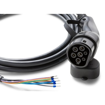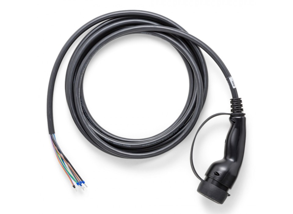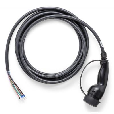 Laadkabel met aan één zijde een Type 2 stekker, en aan de andere kant draden om direct op het laadpunt aan te sluiten.