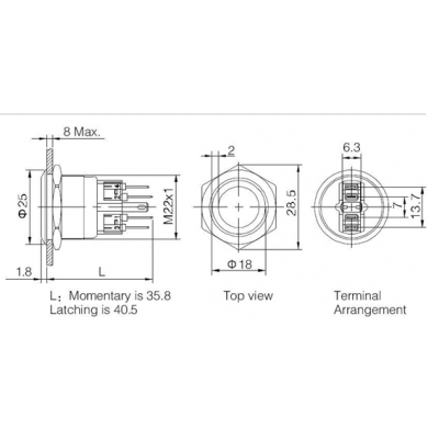 - Materiaal drukknop: roestvast staal